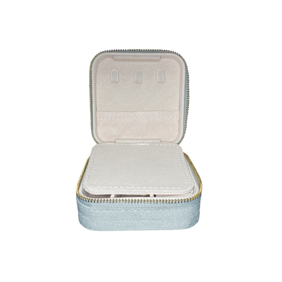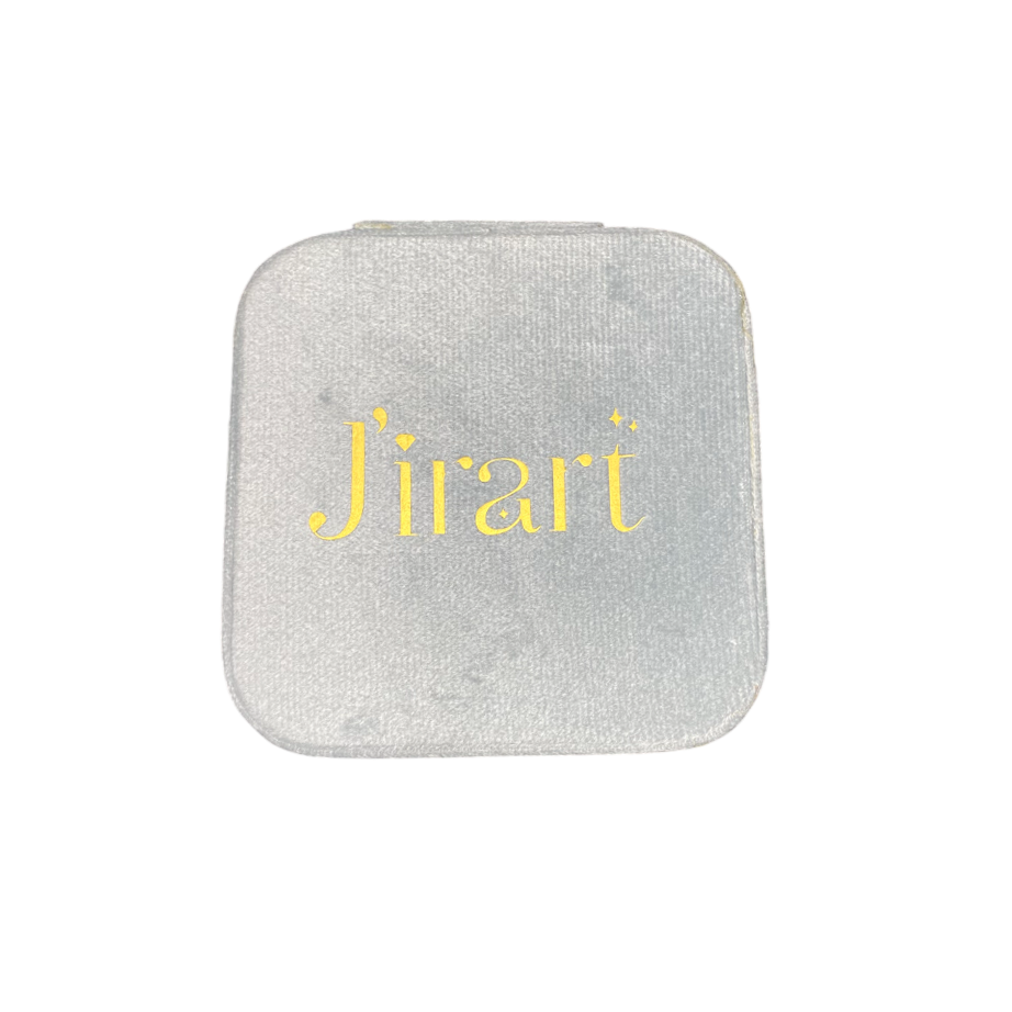 Nuestro joyero de viaje gris de terciopelo es ideal para guardar y transportar tus accesorios con estilo y un mensaje inspirador. Su formato cuadrado de 9,5 cm x 9,5 cm y 5 cm de alto lo hace perfecto para llevar en el bolso o la maleta, ofreciendo gran capacidad interior en un tamaño compacto.