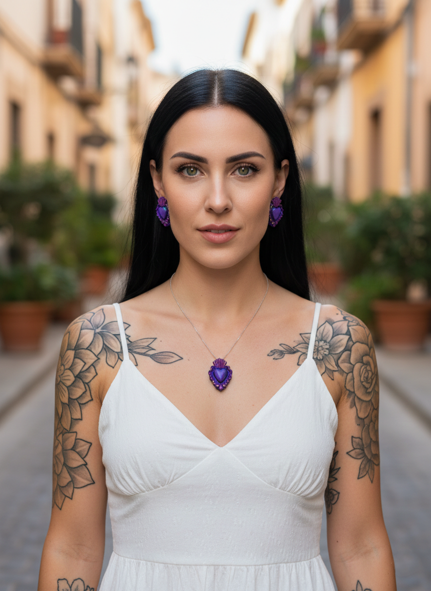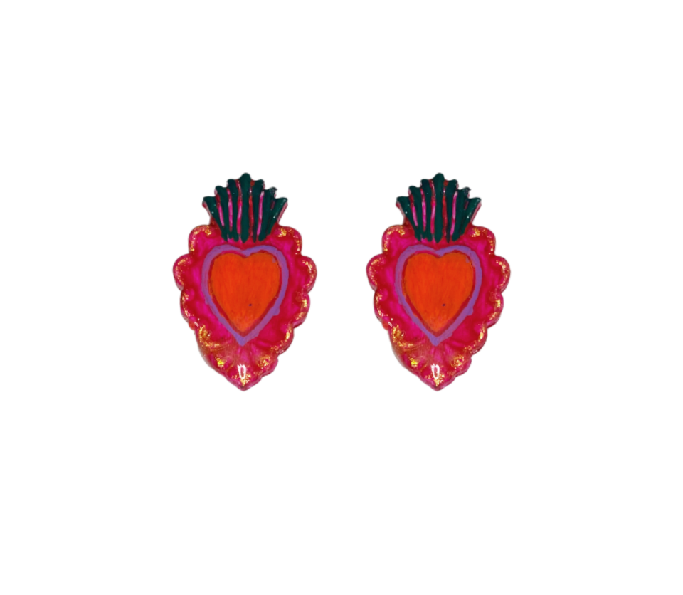 Los pendientes Milagritos son una reinterpretación contemporánea del corazón sagrado, llenos de color, simbolismo y personalidad. Inspirados en los exvotos y corazones milagro tradicionales, este diseño artesanal destaca por su forma de corazón con relieve, detalles ondulados y una pequeña llama superior que representa la fuerza interior y la pasión.