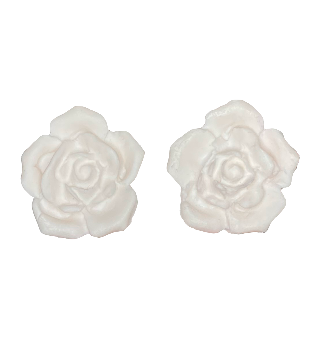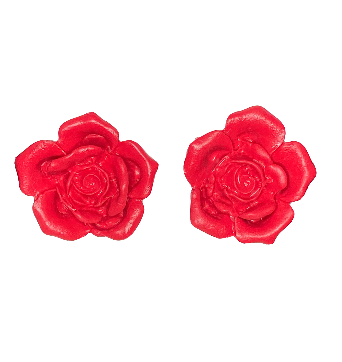 Pendientes Rose, botón con forma de rosa, delicados y hechos a mano en arcilla polimérica. Disponibles en rojo y blanco, perfectos para un look elegante y femenino.