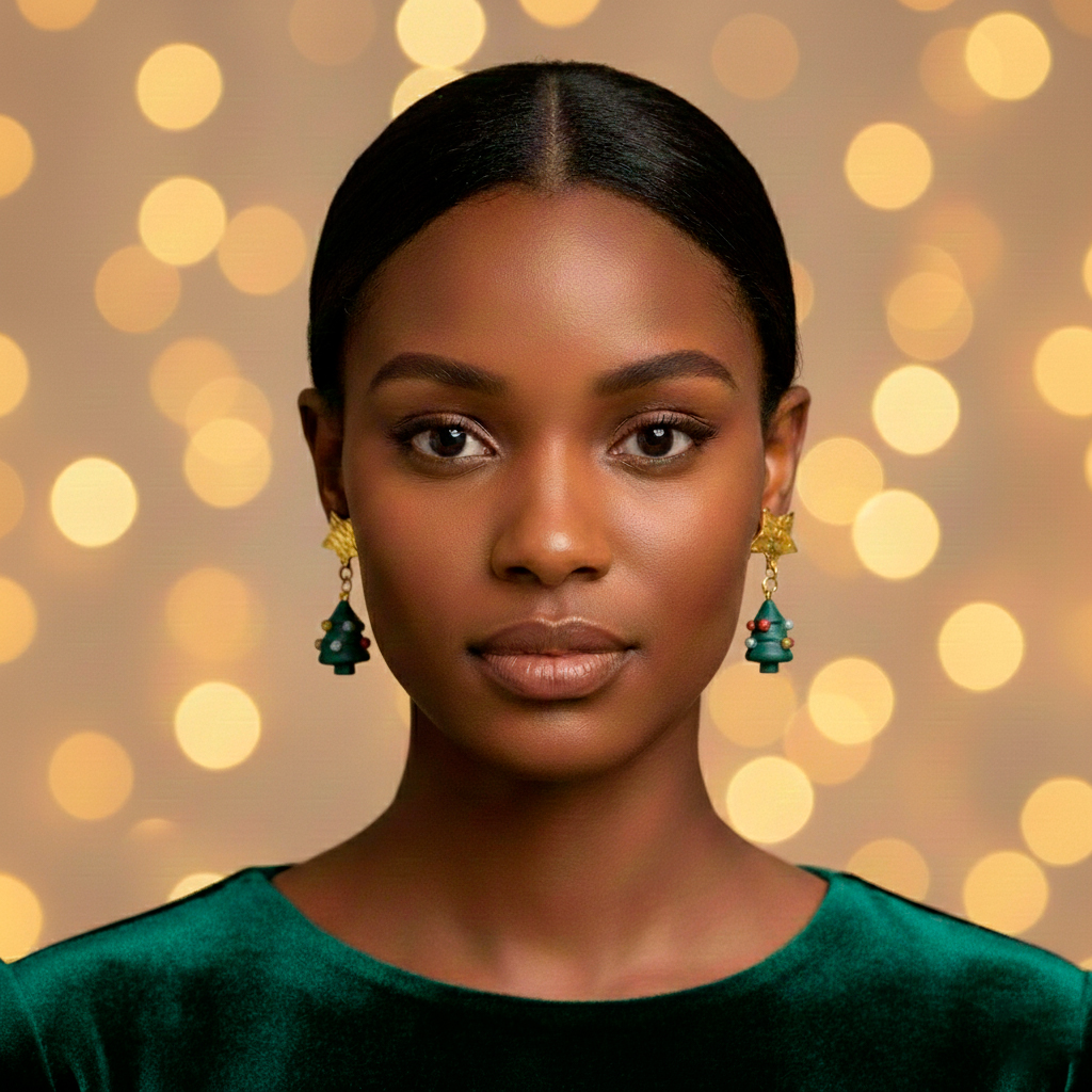 Celebra la temporada navideña con los encantadores pendientes Xmas Tree. Cada pendiente está elaborado a mano con arcilla polimérica verde, formando un árbol cónico cuidadosamente modelado. Está decorado con pequeñas bolitas de Navidad en rojo, dorado y plateado, cada una pegada y modelada a mano, con un toque de purpurina que añade brillo festivo. Los detalles en acero inoxidable dorado y la base en forma de estrella dorada completan un diseño elegante y duradero. Perfectos para lucir en fiestas, reuniones familiares o como regalo especial durante las festividades.